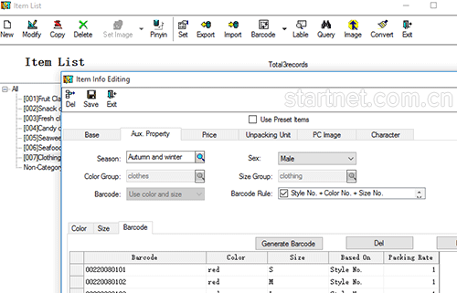 中英文版服装零售前台——POS开单颜色尺码二维表