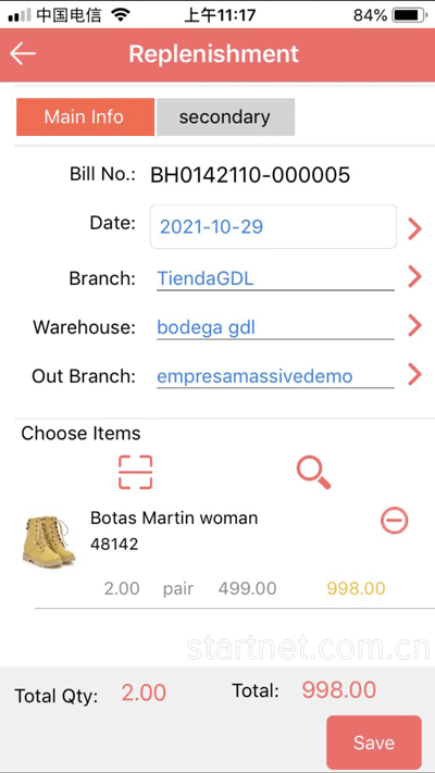 启网中英文服装管理软件App端——门店补货单