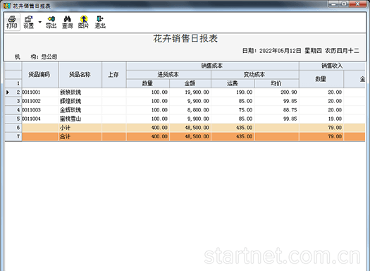 为花卉行业客户开发的专门报表,服务于国内著名的鲜花批发市场,大量花卉批发行业成功案例。