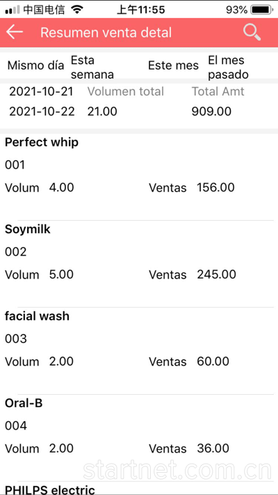 西班牙文APP端零售管理——收款日报表界面