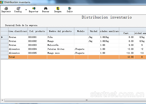 西班牙文版多门店库存管理——库存分布表西班牙文界面