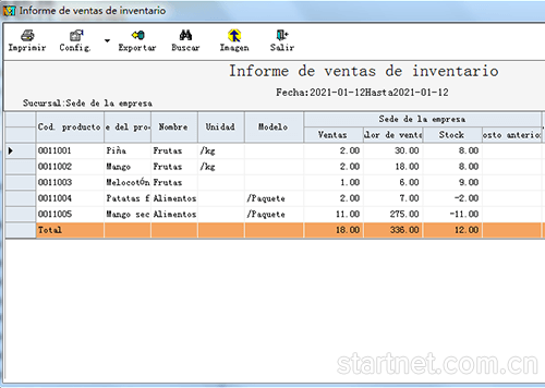 西班牙文版库存管理——库存销量报表西班牙文界面