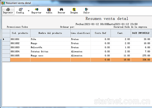 西班牙文版零售管理——零售统计表西班牙文界面