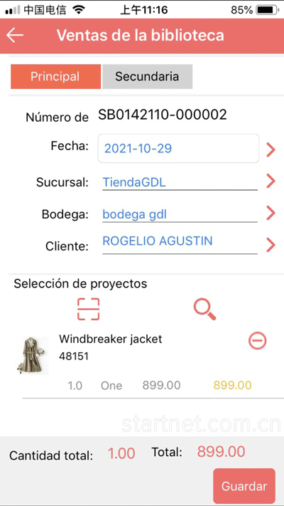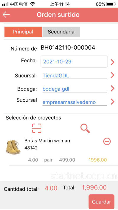 西班牙文服装APP端库存管理——货品资料颜色尺码表详情
