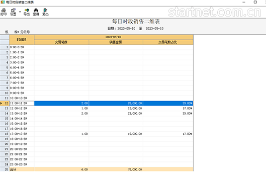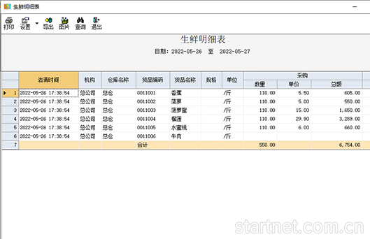 设置生鲜销售时段,反映每天各个时段的销售、采购、损耗、毛利情况报表,掌握各门店的经营情况。